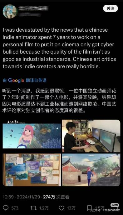 在大规模模仿后的第三天,有国内画师在海外媒体发文,表明国内环境对独立创作者的恶劣态度,认为网络玩梗是对他们的霸凌。讨论似乎更升一级,为创作者鸣不平的声音被置入话语场。