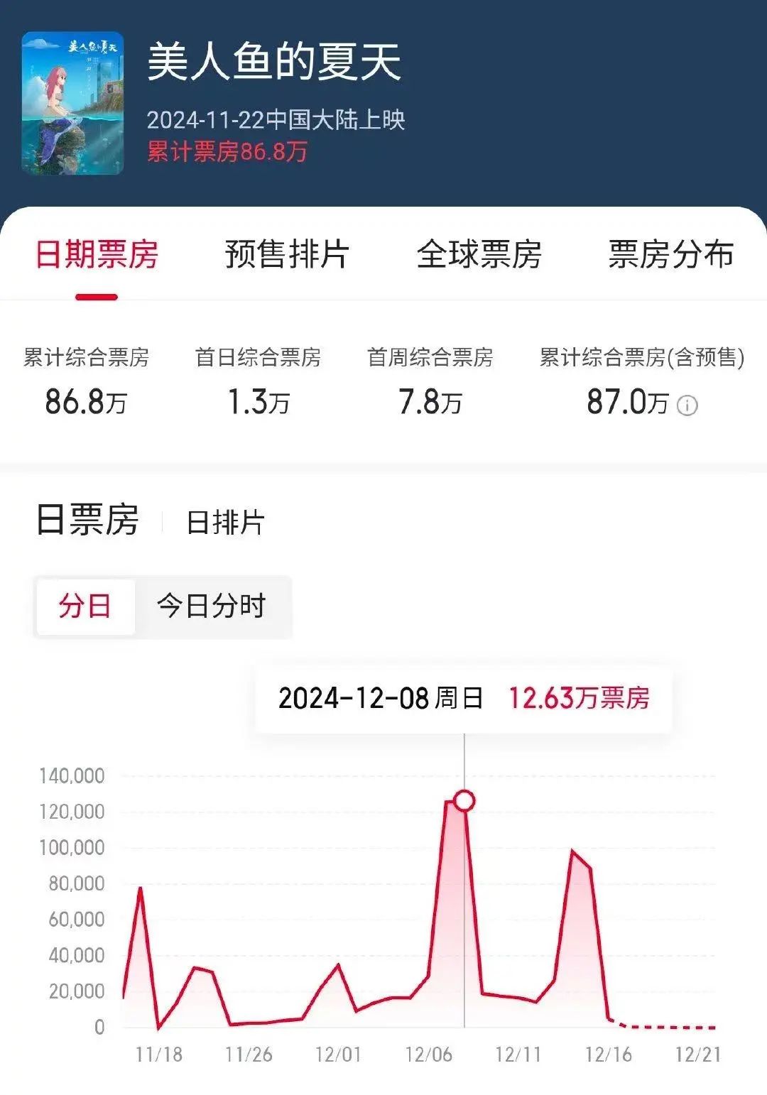 (截止12月16日,电影的票房数据)