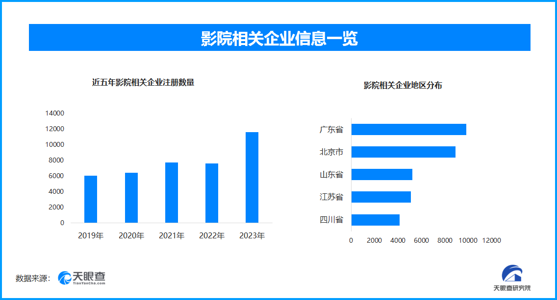 从区域分布来看,广东省、北京市影院相关企业数量位居前列,两个省市数量总和超过1.8万余家,占企业总数的22%。此外,通过天眼查天眼风险和深度风险来看,涉及司法案件的影院相关企业约占总数的7.42%。