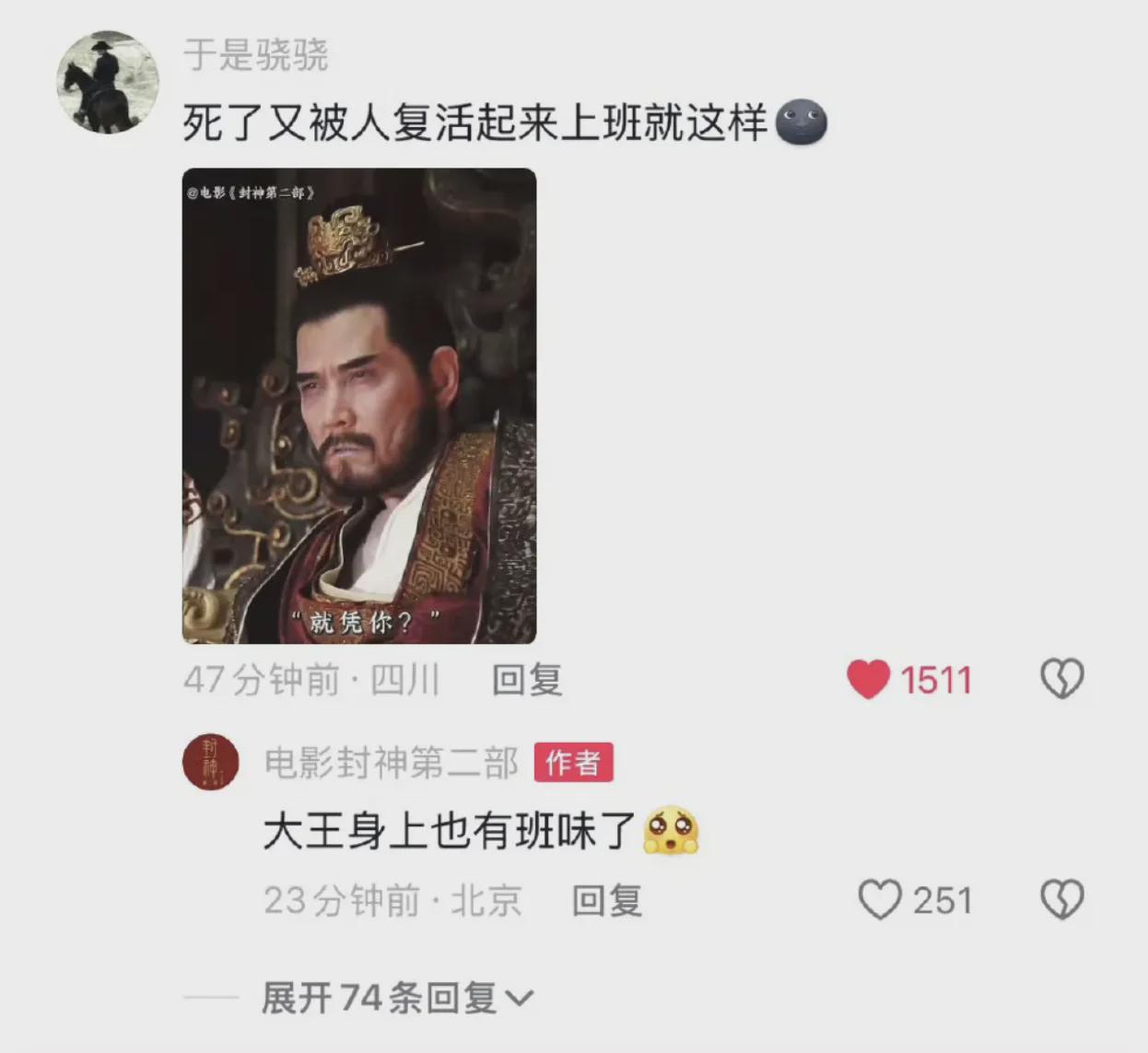 只是,让乌尔善没想到的是,《封神2》会以这种群嘲的方式火了!