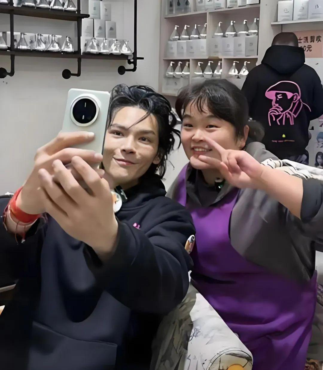 直播中途头上的辫子刚编到一半,向佐拉着晓华跑到店外和粉丝互动,还教晓华唱起了自己的主打歌。