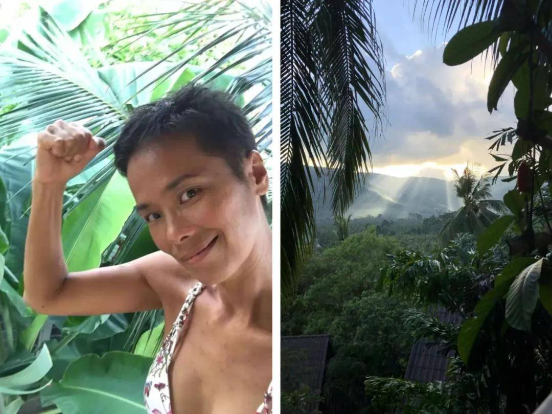 我的房子大概100多平米,远远看着海,可以看到大月亮落到海里,最漂亮是满月,“哐”照到你的床上。我都不关门,因为我不用空调,外面的树影和夜鸟的叫声非常治愈,那是最大的犒劳,因为白天累了一天,早上4点多钟醒,到晚上9点都是理疗程序,做瑜伽、冲肝胆、清洗肠子、按摩等等。每天都是换一次血的感觉,饭也只能吃一点点,比如蒸红薯、藜麦,大米都不能吃。