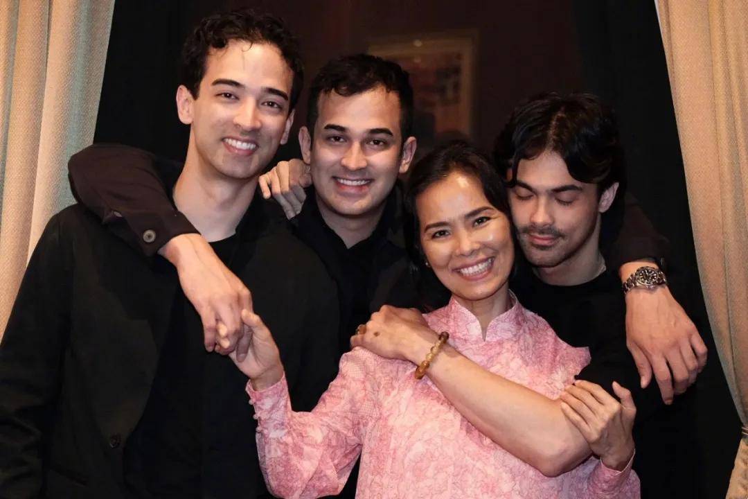 韦唯和三个儿子,在老三韦紫湦的生日宴上