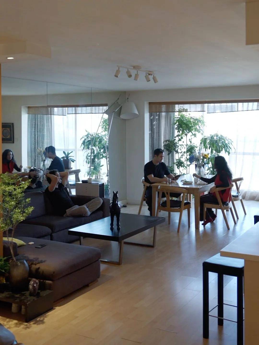2004年搬回北京,2006年我们重新装修这个三室一厅的房子,我已经带着孩子们独立生活2年了,不想再带着过去的记忆。我的设计就是特别简约,回到家不想要任何信息,白白的墙,直角的线条我特别喜欢。当时对装修队也是挑战,我坚持一定要完全直角的水泥感。地板是浅色的原木,我就喜欢看纯木的东西。