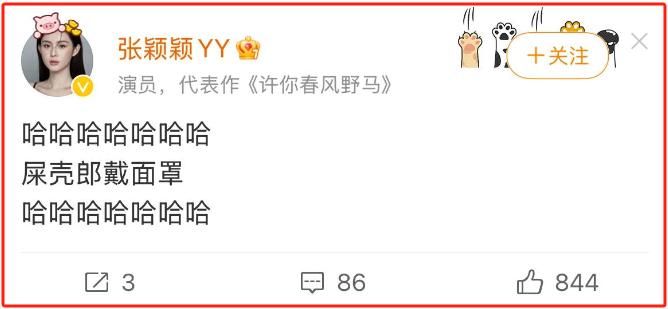 有人在评论区发了张兰之前戴面罩模仿光头的照片,张颖颖则直接回复【和老巫婆势不两立】。