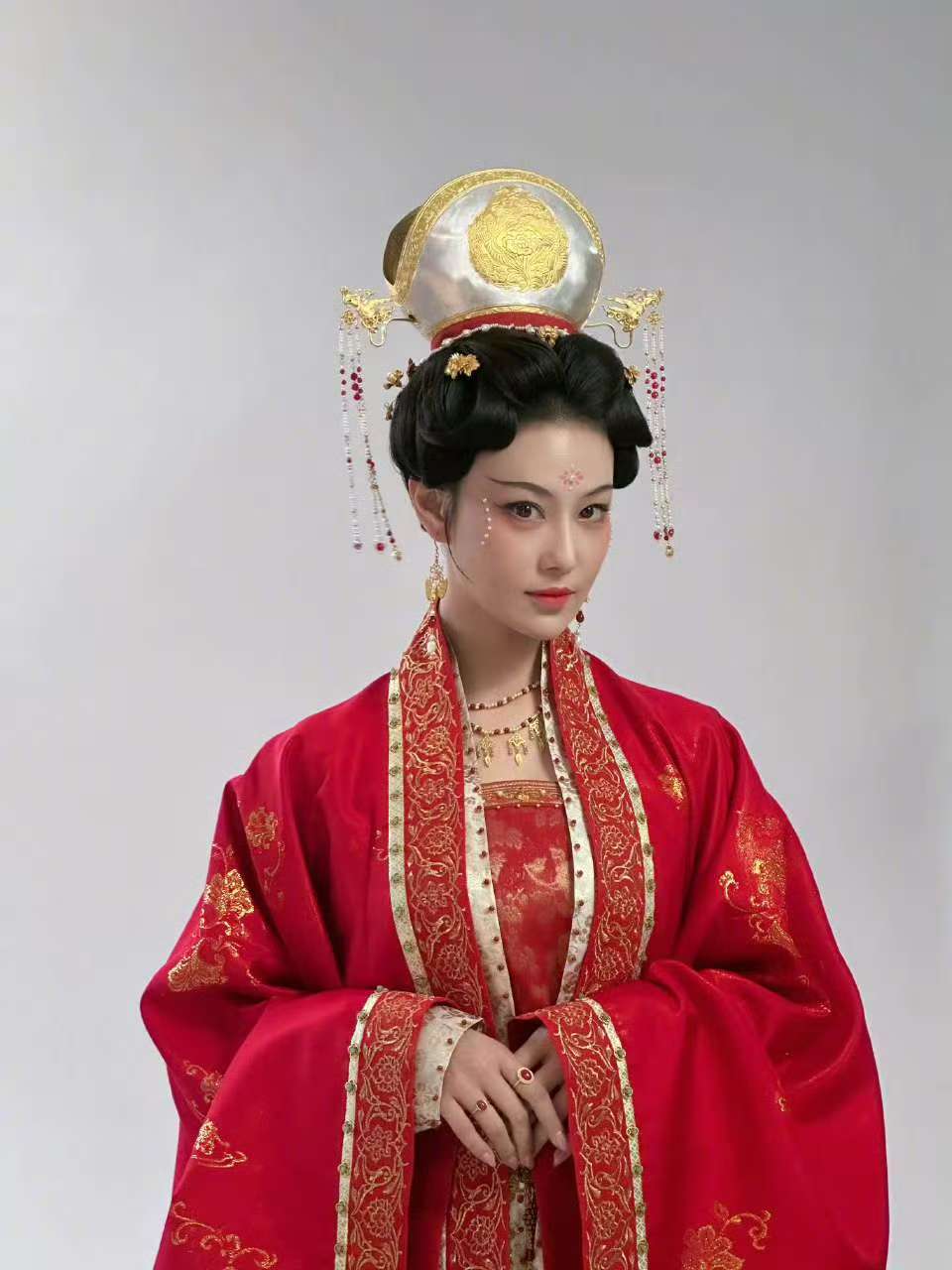她头戴着沉重的金冠,几条吊坠在摇摆之间更显得她妩媚。