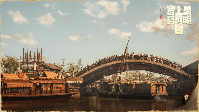 这部古装探案大剧的新奇创意是千年古画在剧中复活,让观众“入画探案”。剧中首案梅船案在历史长卷《清明上河图》的加持下,成功打造中式诡案的悬疑氛围。镜头里风俗画般的故事场景、船过虹桥急收桅杆的名场面都是按《清明上河图》原画进行复刻,就连原画中汴河虹桥上骑马、坐轿两拨人狭路相逢、互不相让的细节,也被放大到剧情中。