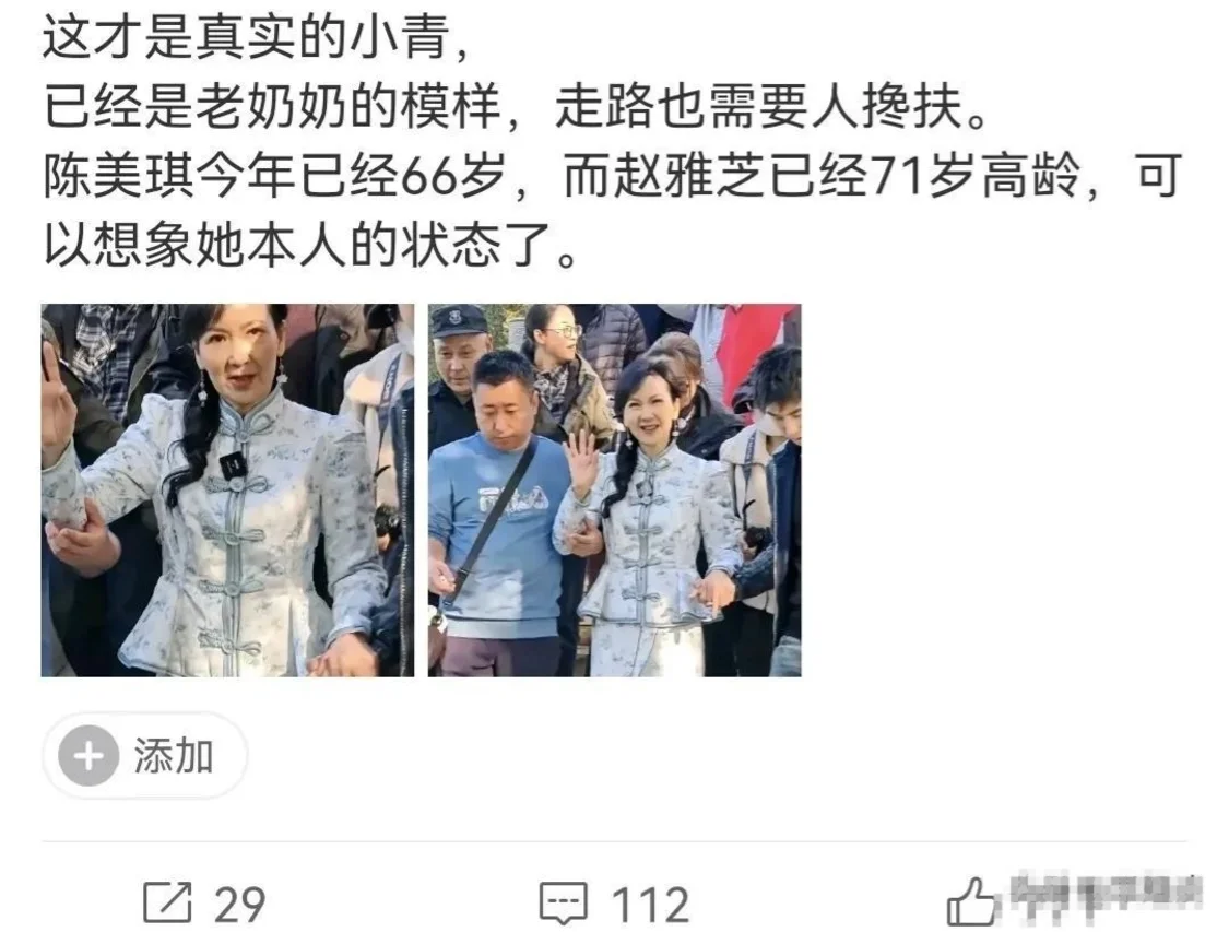 有网友直言:真实的小青,已经是老奶奶的模样,走路也需要人搀扶。