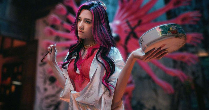 乌尔善这次不但没有表达更没有审美,《封神》里妲己和殷寿那几场戏还挺有高级感,但到了这部,露得可能更多了,却变得像城乡结合部大舞厅开业,精神小伙精神小妹聚会狂欢,特效不大气,打戏不酷炫,动画不高级,色彩光污染。