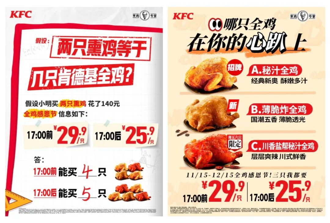 若是品牌基于自身特点及时对接热点并进行二次创作,赋予其独特的价值,会使营销更加深入人心。以肯德基为例,《再见爱人4》中的“熏鸡事变”在网络上引起激烈讨论,恰巧节目在周四播出,网友为其造梗“疯狂熏鸡四”。嗅到流量的肯德基立马出动,巧妙地将“熏鸡事变”的热度转化为品牌传播的机会。在全鸡感恩节促销活动中,将文案与节目中的经典台词和情境相结合,如“三款全鸡能全都归我吗?”、“有没有人能懂啊!三款全鸡都在我的心趴上啦!”,为“疯狂星期四”的传统狂欢日赋予了新的活力。