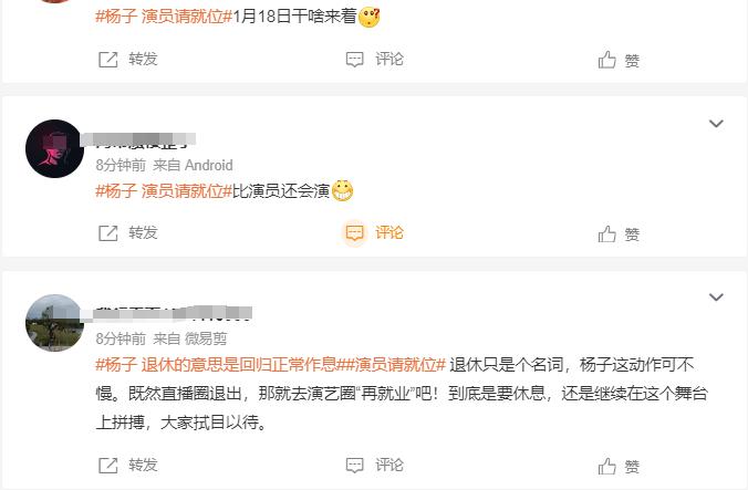 通过《演员请就位》流出的路透可以看到,杨子当天身穿西服走出拍摄场地,被问到有没有信心拿S卡,杨子回答“我尽力”,有种真来展示演技的意思。随后被提问1月18日回归家庭的承诺,没想到杨子又改口了,从之前和黄圣依说好的回归家庭退到幕后变成了调整作息,又一次篡改事实,令人无语。