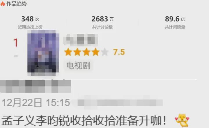 霸榜微博与豆瓣,开分7.5,主演直接被喊话“收拾收拾准备升咖”。