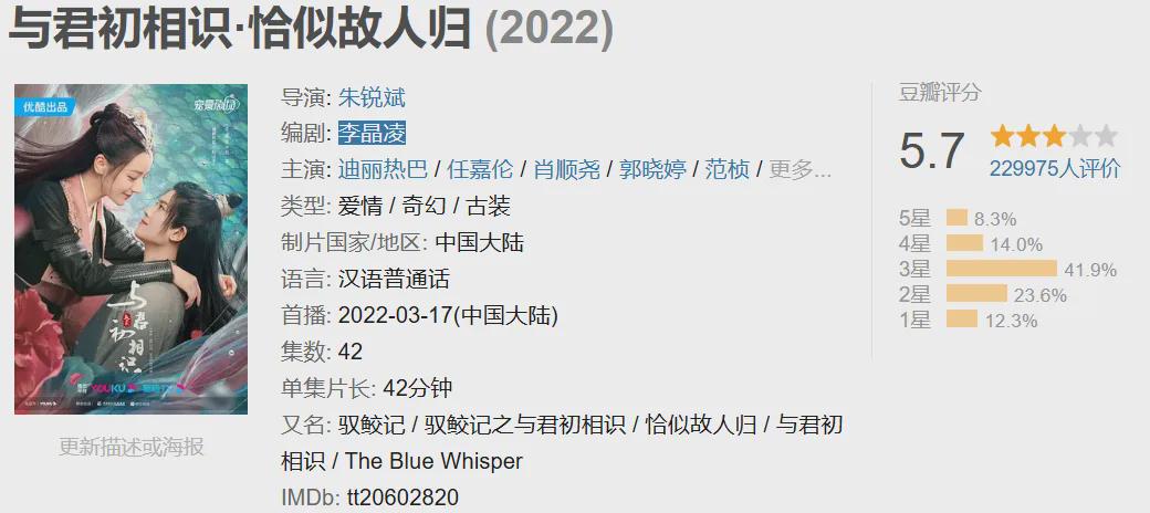 哪怕是一部你可能没听过,口碑也相当差的《与君初相识·恰似故人归》,也有22万人评价。