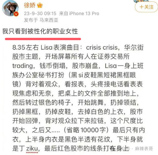 徐娇发声后,lisa粉丝立马找到靶子,去到徐娇微博底下。