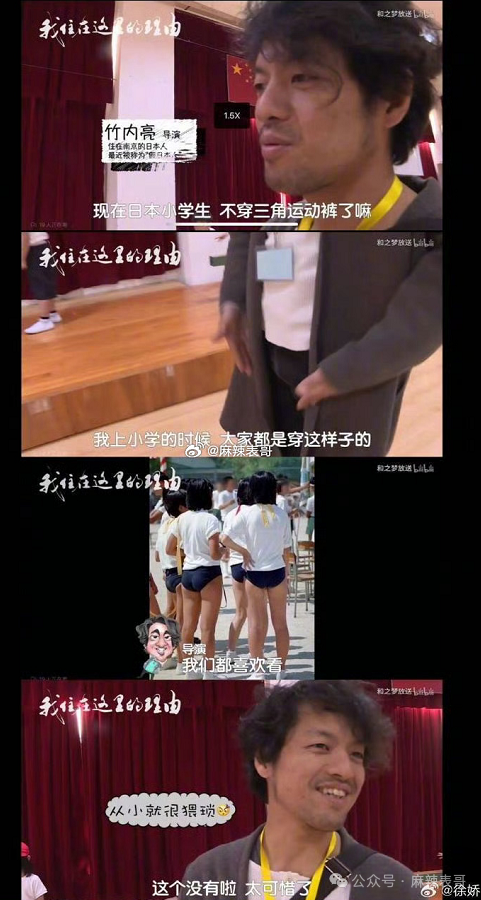 纪录片中,竹内亮说现在的日本小学生不穿三角运动裤了,他上小学的时候,大家都穿,他们都喜欢看。