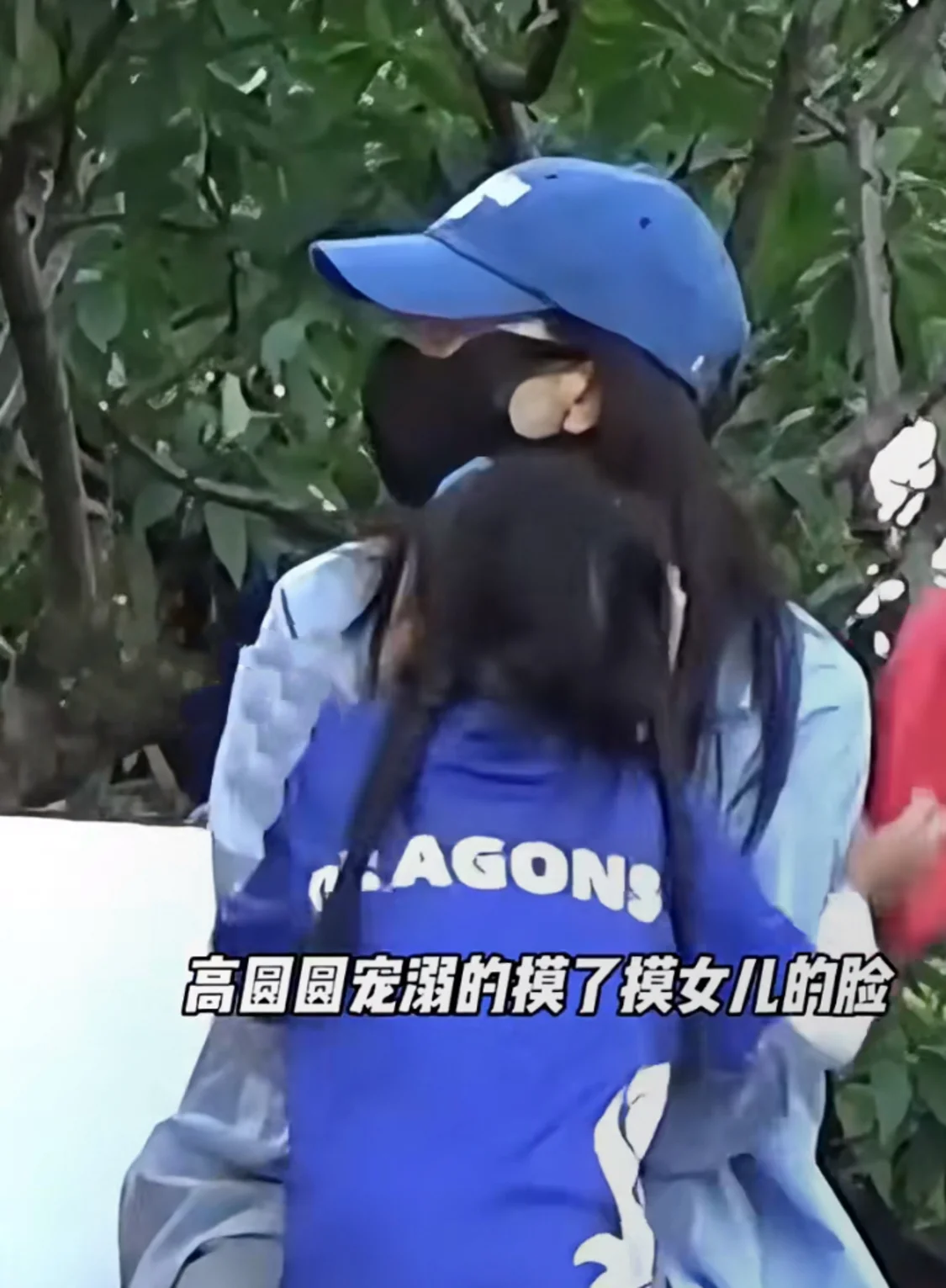 女儿玩累了,就跑到妈妈身边撒娇,高圆圆宠溺地摸了摸女儿的小脸。
