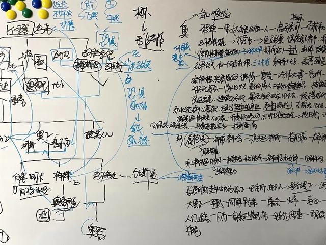 在科幻小说的解读视频里,他会加入相关电影画面、精美CG图,自己还会画卡通人物、做地图,在结尾配一个氛围感拉满的BGM。做《红楼梦》的时候,他把各个版本翻来覆去读了六遍,在本子上梳理每个版本的情节脉络,最后用手写出来,帮助理解和记忆。