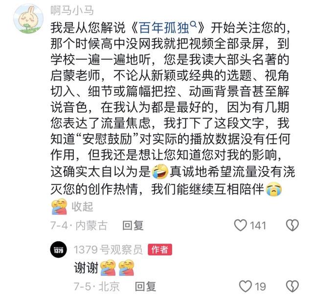 有宝妈私信他,说自己产后抑郁,没事的时候就会点开他的视频,听完感觉情绪也变好一点;有老师说现在会在课堂上播放包子的视频,成为一种新型上课方式;还有人说,有像这样的文学解读,让他觉得是一件幸福的事。