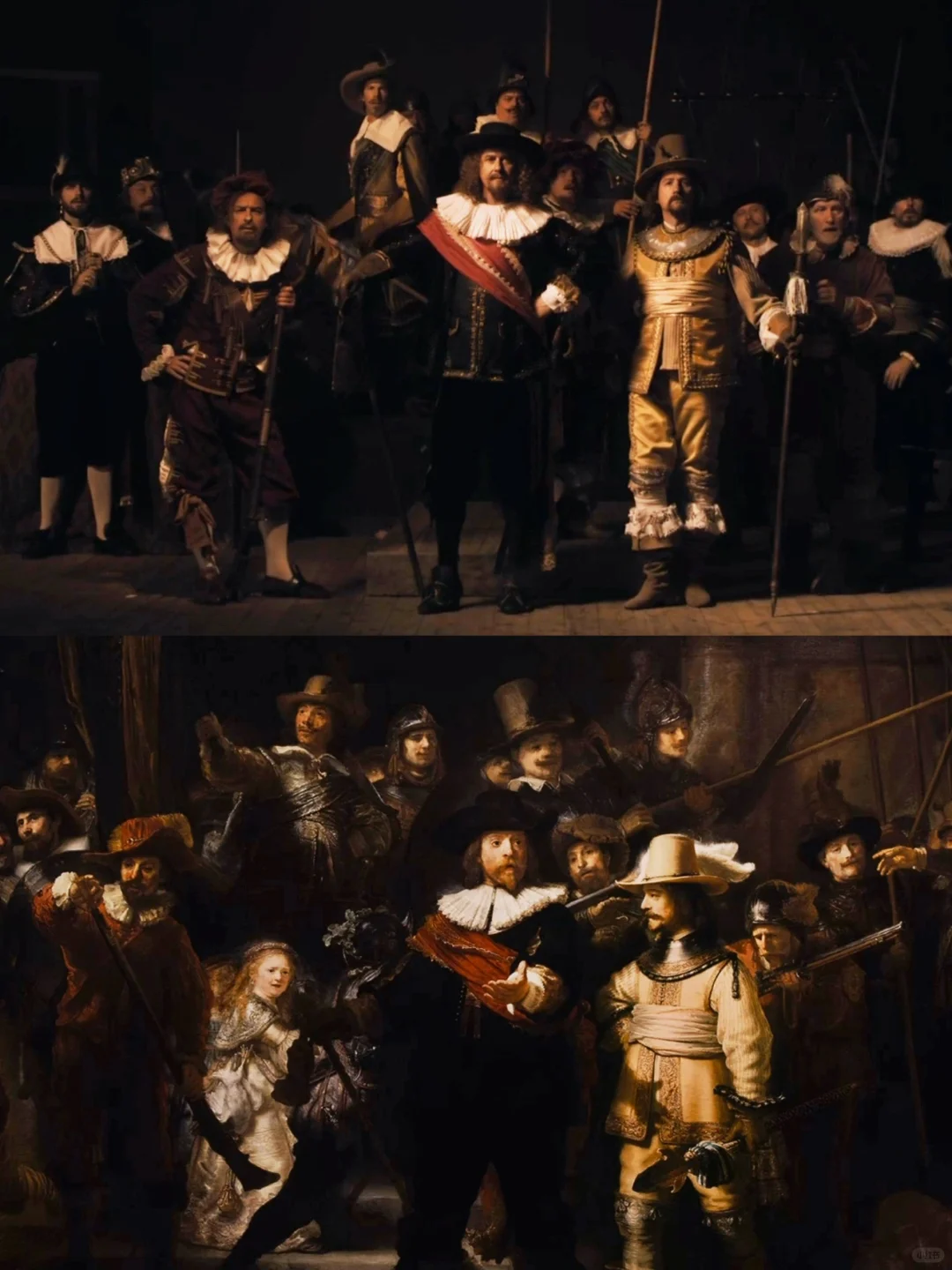 上图是电影画面,下图是《夜巡》的原作,这光影上的还原度,真是下了大功夫。