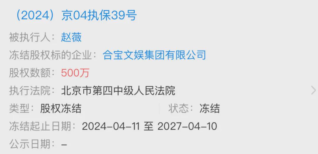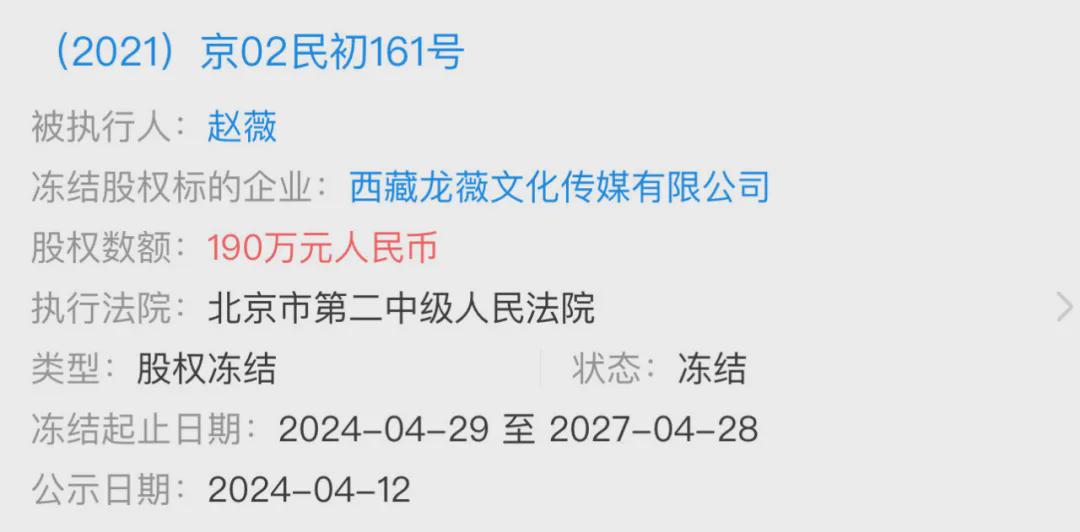 赵薇自己也是被执行人,也没有详细调查这个事情,但起码北京二中院正在执行赵薇,而北京四中院赵薇有案件正在被告并且也冻结了股权。