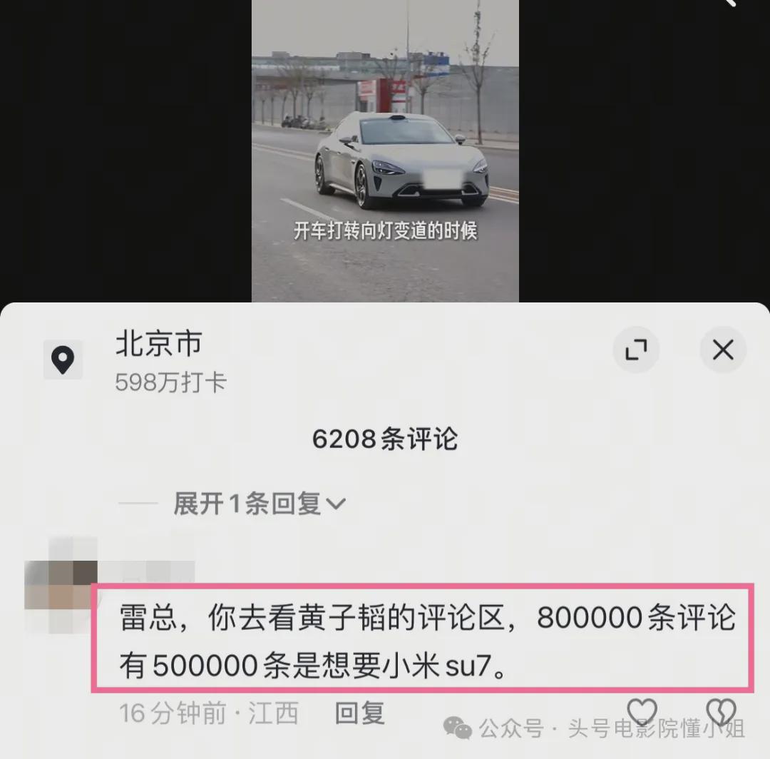 所以,现在看来,黄子韬的评论区最大的赢家其实是雷军,以及他旗下的小米SU7。