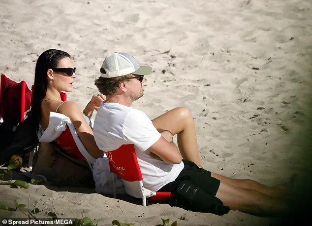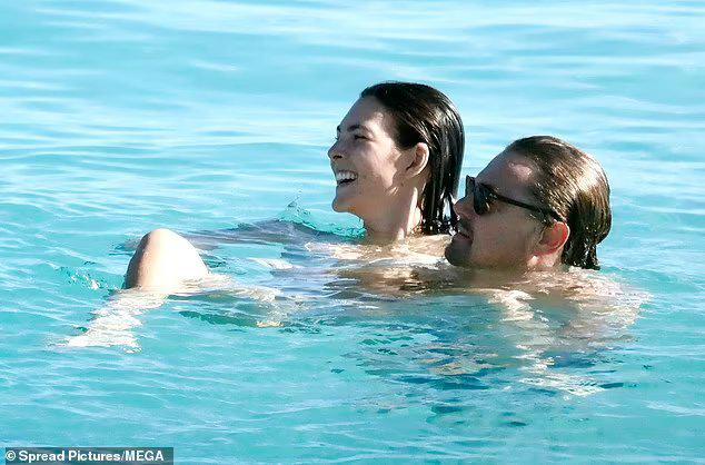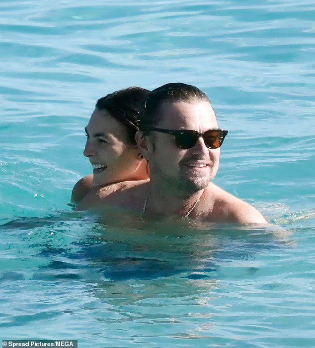 50岁小李子带26岁女友海中玩耍,超模开心合不拢嘴,纤细身姿惹眼