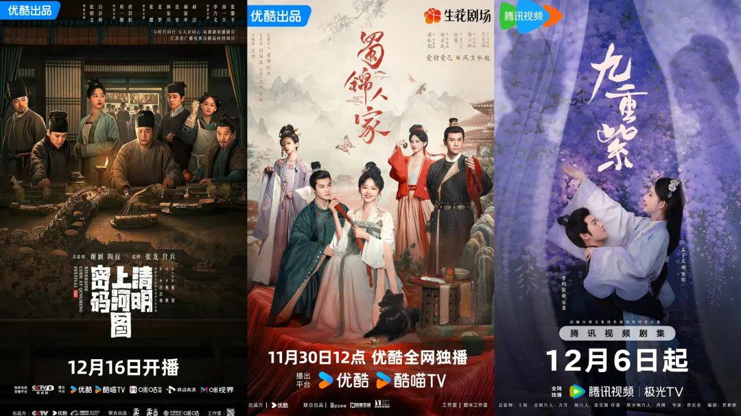 不仅是跨年前后开播的剧集,不少剧集也率先打响了跨年档的第一枪。当前在播的剧集中,优酷的《清明上河图密码》以及《蜀锦人家》,腾讯视频的《九重紫》等,已经率先营造出浓厚的跨年氛围。