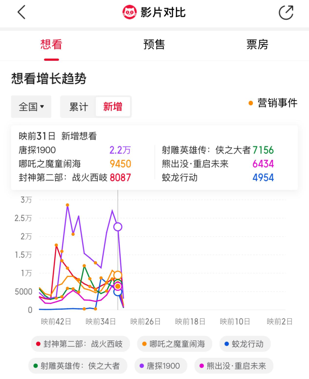 闪耀系列IP光环,同样也是《封神第二部:战火西岐》《蛟龙行动》《熊出没· 重启未来》共有的一大首要杀器。而《射雕英雄传:侠之大者》虽无祖荫庇佑,但「金庸武侠 徐克执导 肖战主演」的配置也足以让人移不开眼睛。