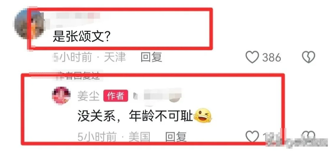 另外,有网友在评论区问她是不是张颂文,姜尘不仅没有正面回应,还特意回复了“年龄不可耻”。