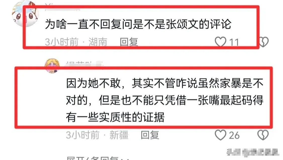 目前她的评论区已经彻底失控,网友都在喊话让她出来说清楚,为何一直不敢回复张颂文的评论,却又字字句句往张颂文的身上引,家暴并非小事,如果她说的男星真的是张颂文,那男方以后的星途,恐怕真要一夜崩塌了吧?