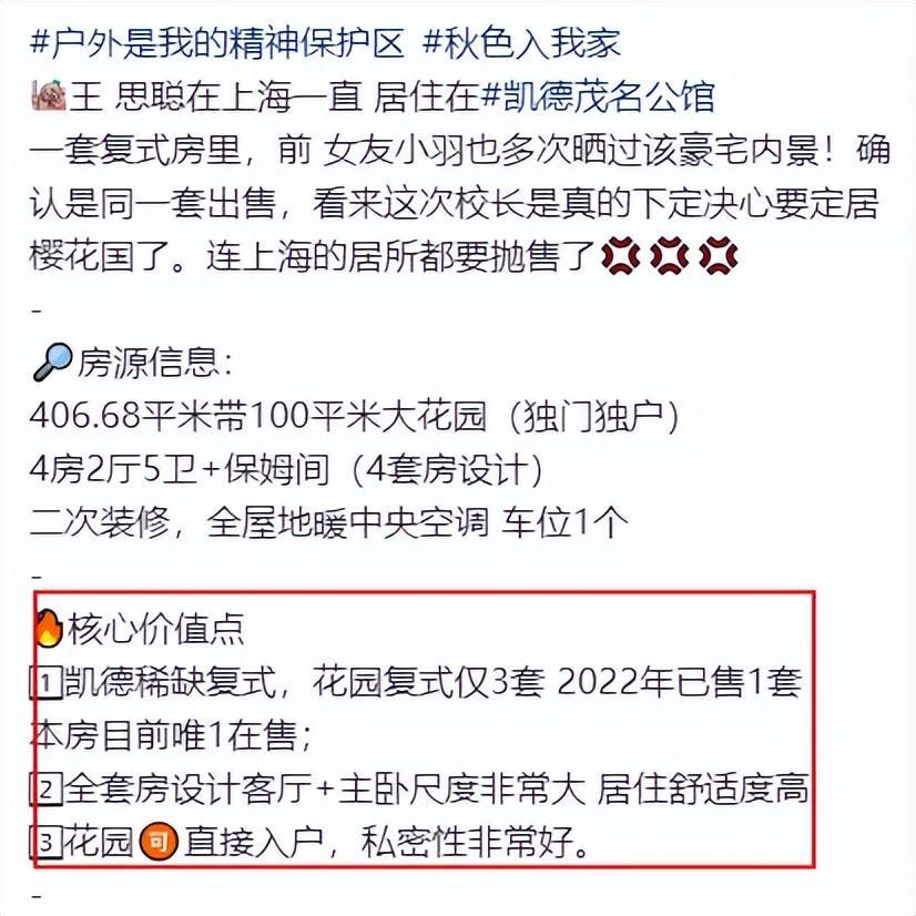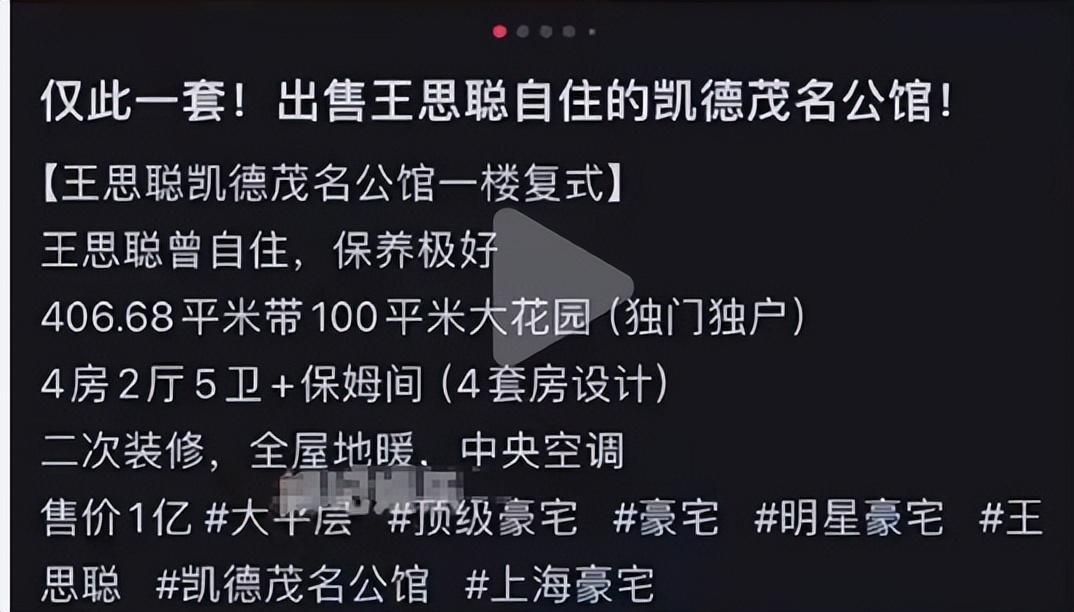 近日,上海某房地产中介公司发布了一条售卖信息,引发了网友们关注和热议。因为卖房的主人居然是王思聪,因此点击量也是持续飙升。