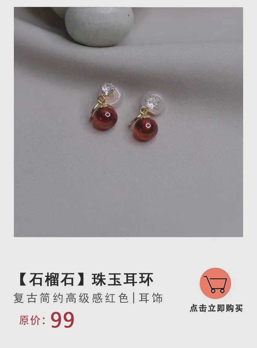 温润光泽的红色锆石,上边还有一颗碎钻点缀,低调地展示着法式优雅。