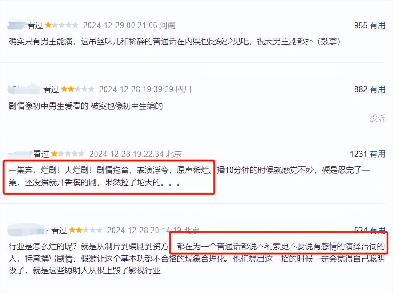 “男主的普通都说不利索,更不要说有感情的演绎台词了。”