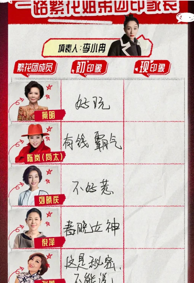 随着对她了解的深入,大家才发现,之前的担心着实是多余了。李小冉与人相处起来,那心态可谓是豁达又耿直,秉持着绝不让自己陷入精神内耗的原则,活得那叫一个洒脱自在。填印象表时,她毫不含糊地给刘晓庆填上了 “不好惹” 的标签,这般直来直去的做法,着实让人忍俊不禁。贺峻霖一开始喊她 “姐”,后来发现她竟比自己亲爸还大 5 个月,于是改口叫 “小姨”,可李小冉却来了句 “我比你爸还大,叫(我)爸”,这般幽默又随性的回应,尽显她直爽的性格。怪不得朋友在她上综艺前特意叮嘱 “谨言慎行,说话注意点,别说不该说的话”,原来深知她这心直口快的性子。