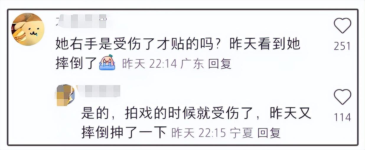经由粉丝科普,才知宋茜手臂上贴的是肌贴,用来缓解肩臂肌肉疼痛。而受伤的原因也跟湖南卫视跨年舞台有关,宋茜之前拍戏的时候手臂有拉伤,在彩排舞台时因为地板太滑摔倒,手臂伤再次加重。