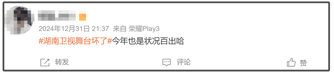 2024跨年夜晚会在惊喜与热议声中结束了!其中湖南卫视舞台状况频出,“湖南卫视舞台坏了”话题还直接登上热搜,引发讨论。