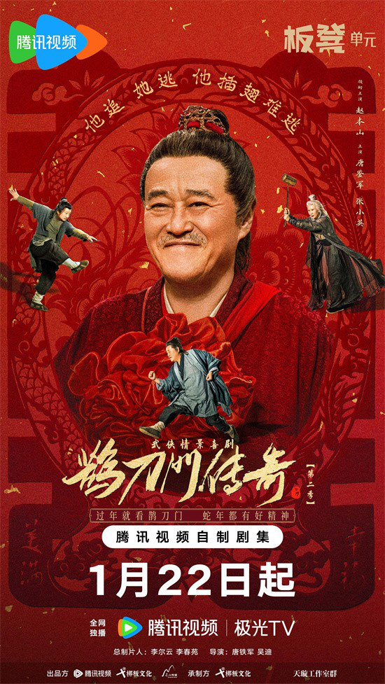 《鹊刀门传奇 第二季》由唐铁军和吴迪执导,赵本山、宋小宝、宋晓峰、文松、程野等主演,马苏、许君聪、赵继伟等全新加盟,将于1月22日网络上线。