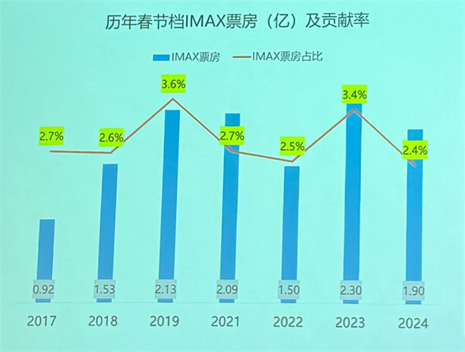 2023年春节档IMAX票房达2.3亿,为历年票房最高;2019年春节档IMAX票房占比为3.6%,为历年票房贡献率最高。2025年春节档迎来了IMAX含量最高的一年:
