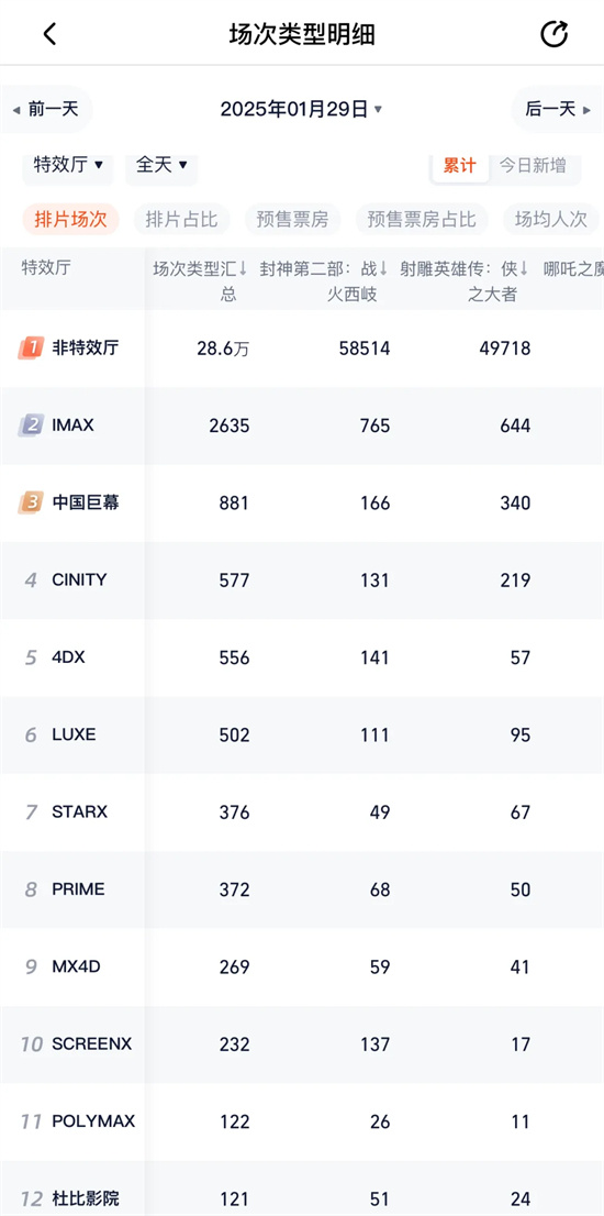 CINITY和中国巨幕都是中影的电影科技品牌,《射雕英雄传:侠之大者》由中影主控,因此该片在CINITY和中国巨幕都获得了较为明显优势的排片支持。