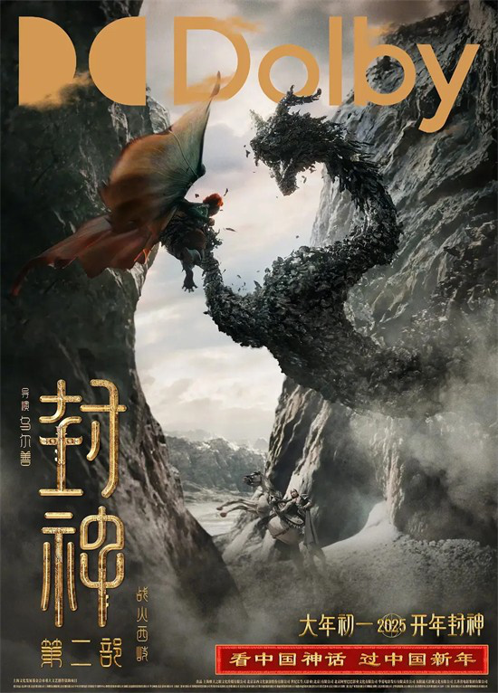杜比影院通过杜比视界绚丽生动的画面和杜比全景声的沉浸式音频,带给观众极致的视听体验。在目前大年初一杜比影院的排片占比中,由《封神第二部》拔得头筹,拿下超过40%的排片量。