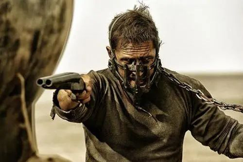 时隔三年,汤姆哈迪继续戴着面罩出现在《疯狂的麦克斯》系列中,他以一身粗犷军装形象出现,驾驶摩托行驶在沙漠荒野上。
