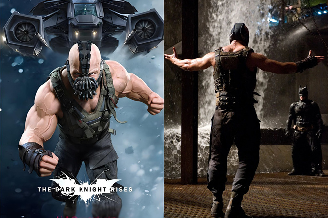 2012年汤姆哈迪在《蝙蝠侠:黑暗骑士崛起》中饰演蝙蝠侠的强劲对手,大反派毒药贝恩,在导演诺兰的要求下,他特意为这个角色增重27斤,还学习了一身格斗技巧。汤姆哈迪在全片中都面带黑色面罩,但靠着眼神的转换也能让观众感受到角色的霸气。