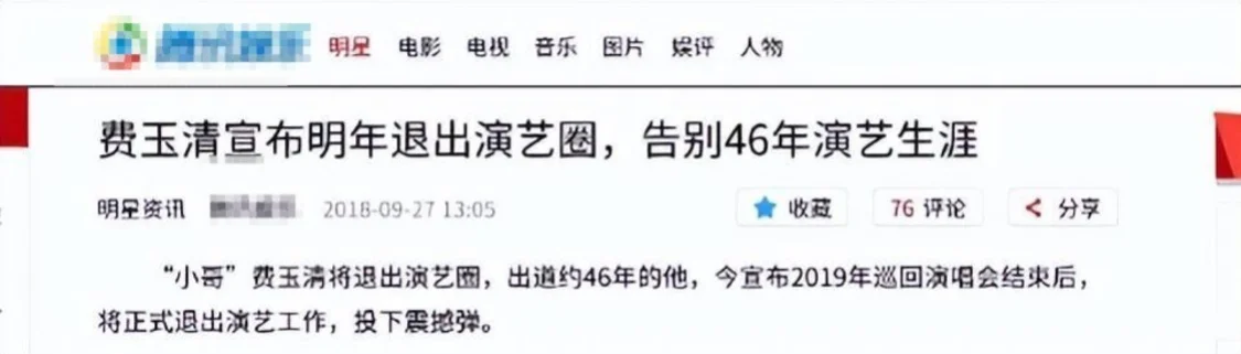 早在2018年9月,费玉清就通过团队放出过退圈的消息。