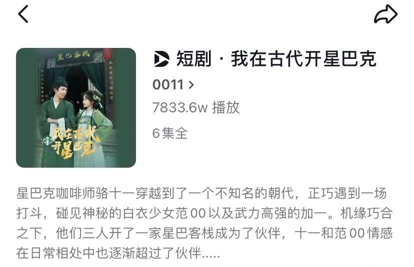 初次试水短剧,星巴克就精准把握了这届观众的心理——“一般的烂剧我不看,但烂成这样的我高低得看看”,《我在古代开星巴克》当然不烂,甚至在短剧里算得上制作精良,但它主打的就是一个“离谱”。