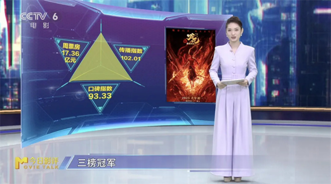 在过去一周,《哪吒之魔童闹海》凭借传播指数102.01、口碑指数93.33、周票房17.36亿的惊人成绩,连续两周获得M指数传播榜、口碑榜和市场榜三榜冠军。其电影频道融媒指数、专业媒体关注指数、社交媒体热度指数、视频平台传播指数、用户倾向指数等单项指标均稳居第一。