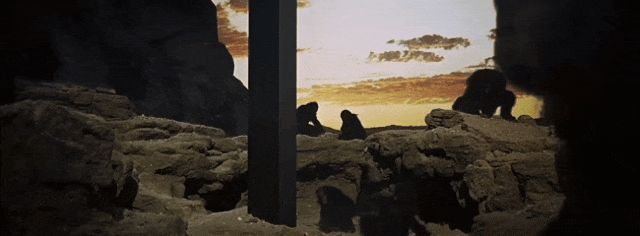这是库布里克脑海中,地球上还未出现人类时的景象,属于人类的黎明即将到来。