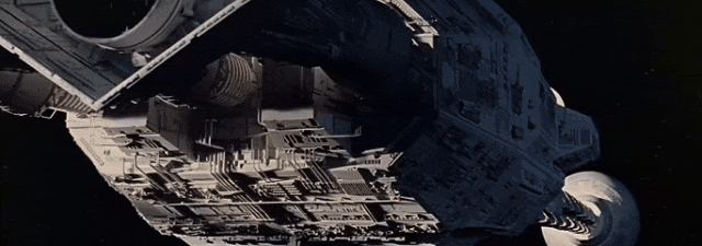 旋转太空舱通过离心力模拟重力的设定,至今仍是科幻片的经典模板。