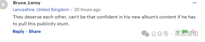 “他们俩真是绝配。如果他得靠这种宣传噱头来推专辑,那他对新专辑内容肯定没什么信心。”