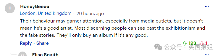 大多数有眼光的人能看穿这种哗众取宠和假新闻。如果专辑真的好,才会有人买。”