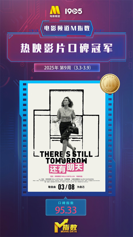 电影频道M指数2025年第9周结果发布。3月3日-3月9日,电影频道M指数热映影片口碑榜前6位依次为: